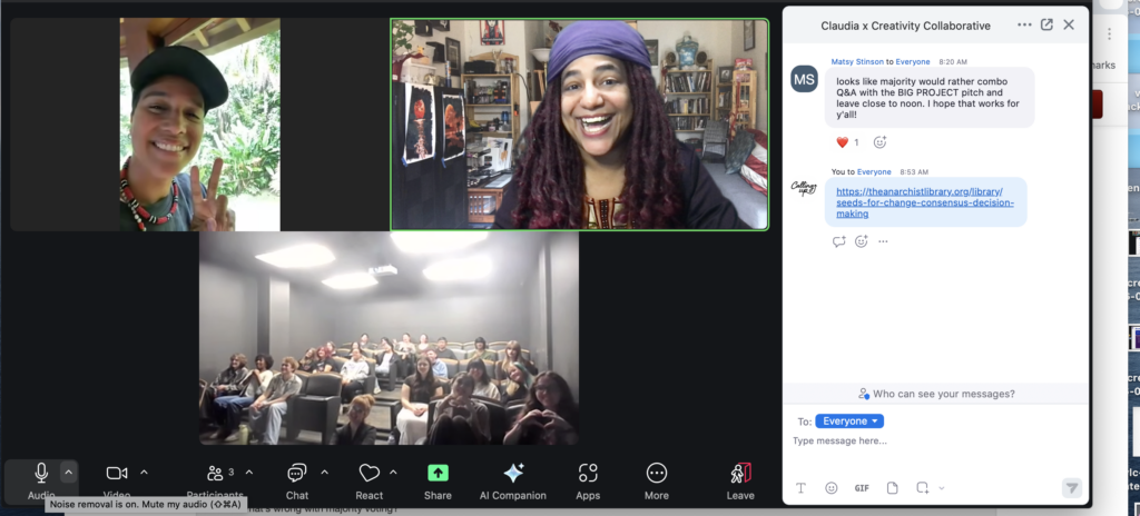 Following a case study presentation, Claudia worked directly with students on their own projects—offering feedback, asking critical questions, and helping them refine their approaches to collaboration, design, and process. The session emphasized not just how to make work, but how to make work together in ways that are ethical, accessible, and alive.